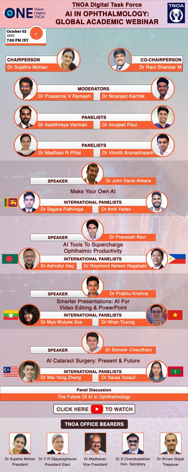 AI in Ophthalmology: Global Academic Webinar View Dr.A.P.J. Abdul Kalam’s Oath for Ophthalmologists I, as an eye care professional realize by removing darkness andgiving light to the patientis indeed God’s mission.