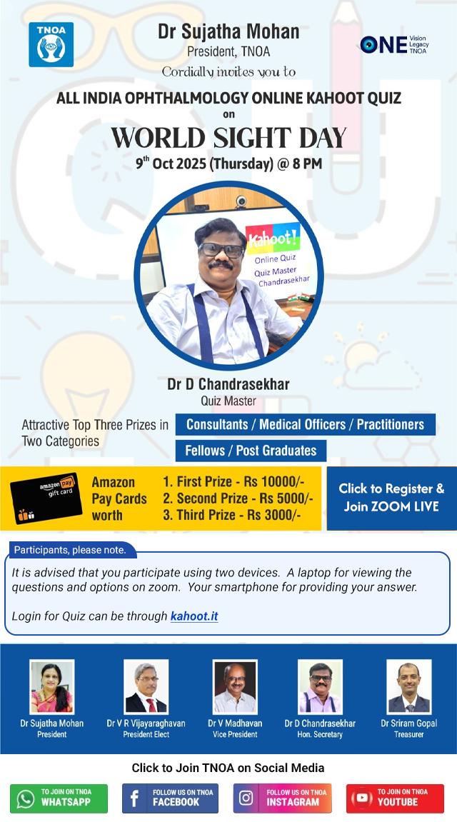 Quiz on World Sight Day Zoom Dr.A.P.J. Abdul Kalam’s Oath for Ophthalmologists I, as an eye care professional realize by removing darkness andgiving light to the patientis indeed God’s mission.